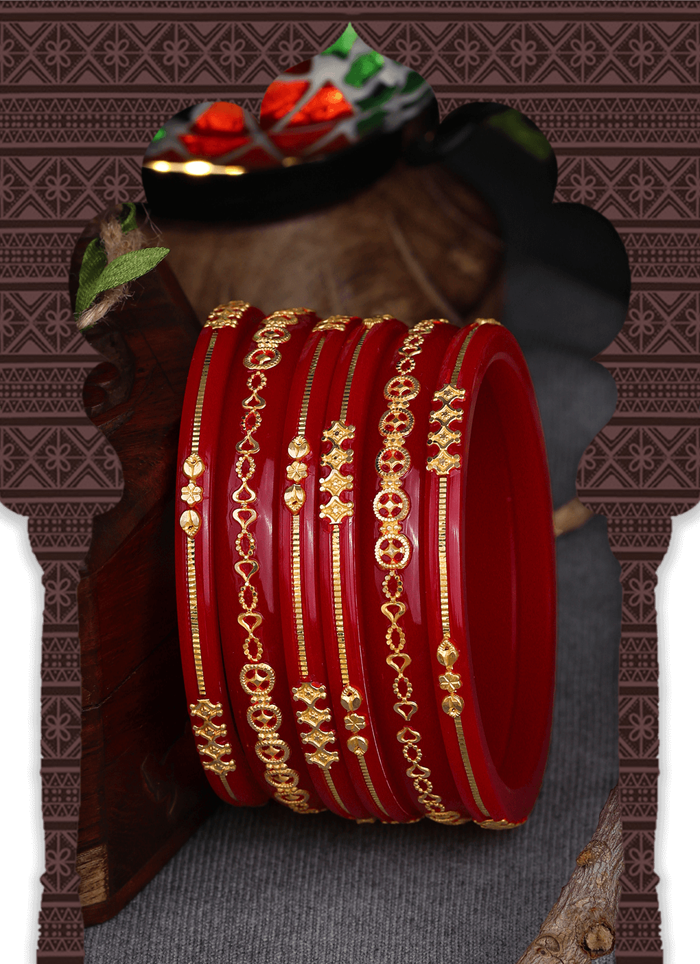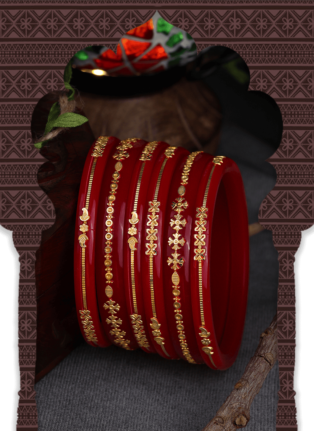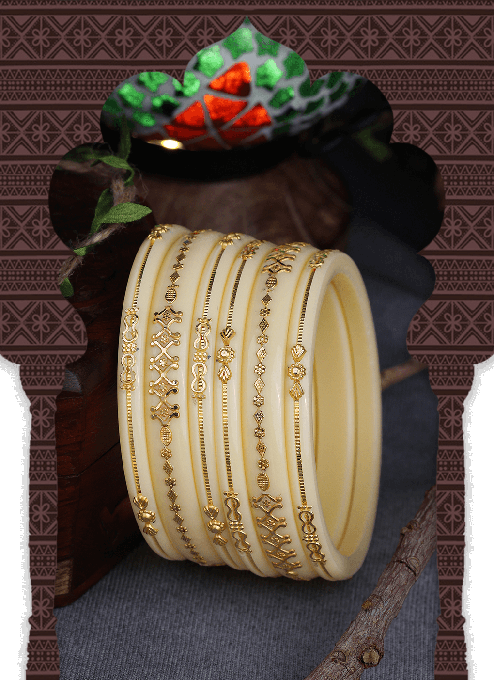 We are Manufacturer and Wholesaler of exclusive gold jewellery from the last 30 years with creative and innovative designs in Ahmedabad. We specialize in designer Lagan chuda, ganga jamna chuda, painting chuda, gold kundan chuda, gold jadtar chuda etc. Have a look at our online catalogue and discover popular jewelry designs for every trend and occasion where each piece offers an ultimate essence of completeness to every individual wearing it.