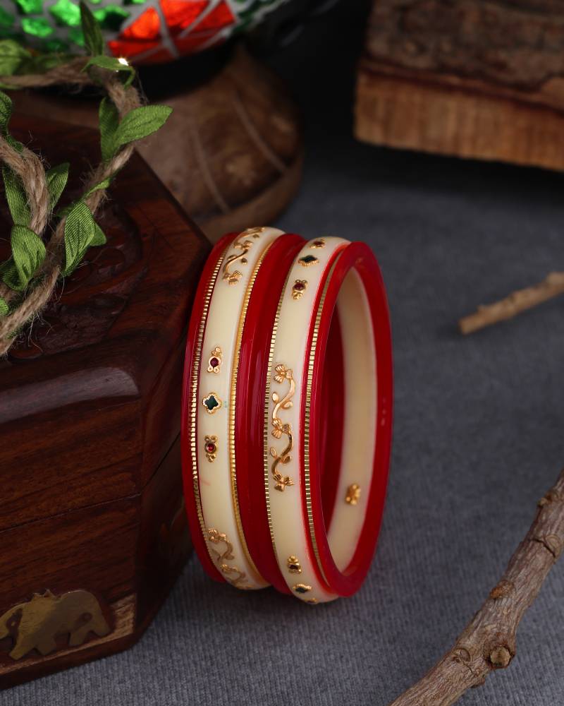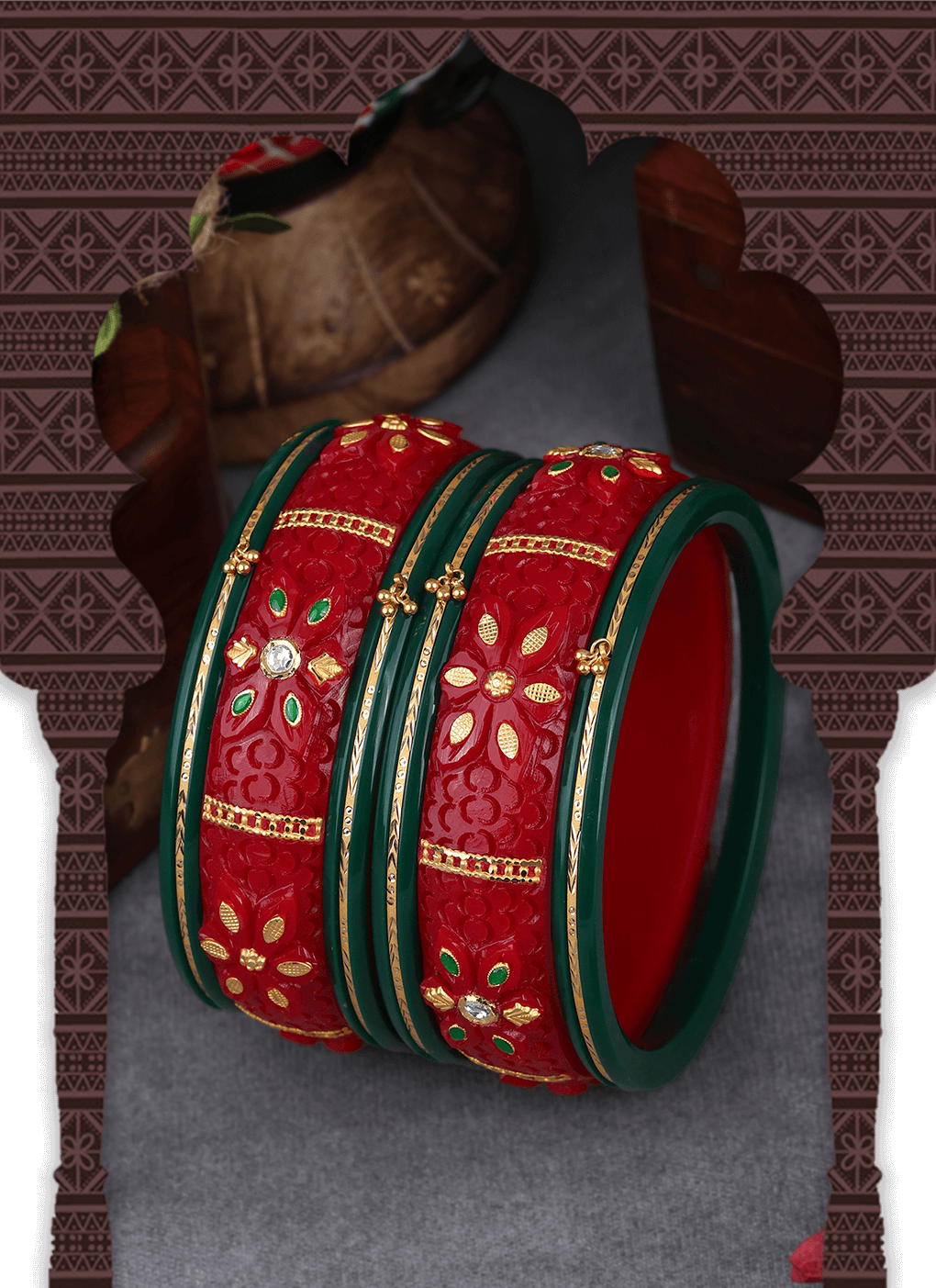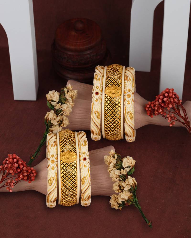 We are Manufacturer and Wholesaler of exclusive gold jewellery from the last 30 years with creative and innovative designs in Ahmedabad. We specialize in designer Lagan chuda, ganga jamna chuda, painting chuda, gold kundan chuda, gold jadtar chuda etc. Have a look at our online catalogue and discover popular jewelry designs for every trend and occasion where each piece offers an ultimate essence of completeness to every individual wearing it.